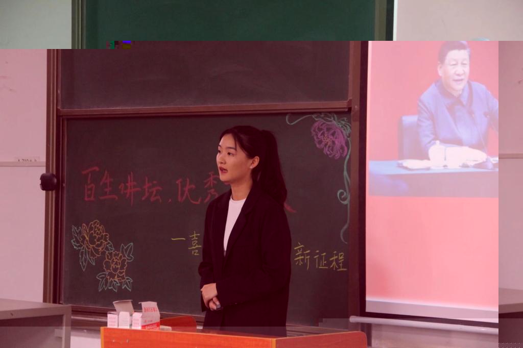 十三位參賽選手均精心制作了PPT,并配上了視頻、音頻、動畫和圖片等,内容豐富,形式多樣。刁杉杉同學以“不忘初心,砥砺前行”為題,首先回顧了黨的百年奮鬥進程,随後提到“一切偉大的事業都需要在承前啟後、繼往開來中推進”,鼓勵青年“站在新的曆史起點上,我們必須發揚迎難而上的精神,披荊斬棘,闖關奪隘,過了一山再登一峰,跨過一溝再越一壑。保持‘越是艱險越向前’的英雄氣概,激發‘鬥罷艱險又出發’的壯志豪情,團結奮鬥、勇毅前行。”白碩同學提出了“國家的前途,民族的繁榮,人民的幸福,是當代中國青年必須和必将承擔的重任,青年興則國興,青年強則國強,黨旗所指就是青年所向”。劉佳瑤同學說到:“青年是時代的晴雨表和風向标,時代的責任賦予青年,我們身在紅旗下,沐浴在春風裡,這也意味着我們需要肩負起更大的擔當。新時代的中國青年要以實現中華民族偉大複興為己任,增強做中國人的志氣、骨氣、底氣,不負時代、不負黨和人民的殷切期望。功成不必在我,功成必定有我”。幾位選手強有力的話語說出了當代青年,尤其是我們大學生應有的樣子,赢得了台下觀衆陣陣掌聲。
