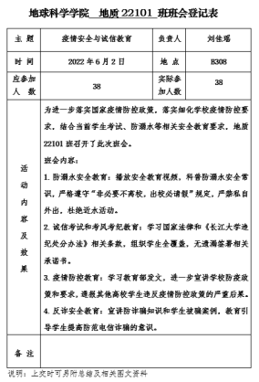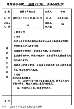(通訊員 周再文)為有效預防疫情傳播,确保學生身體健康和生命安全,6月1日至6月,我院以班級為單位,充分發揮年級輔導員、班主任在安全教育中的引領作用,通過主題班會等形式,廣泛開展學生疫情防控教育與安全教育班會,從嚴從緊、落實落細學校對于疫情防控、畢業生安全離校、防溺水、學生四六級以及誠信教育等相關工作要求,全力守護校園安全穩定。
