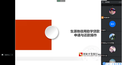 6月16日晚8點,輔導員潘志遠老師針對生源地貸款畢業生同學在騰訊會議上開展“誠信還款、誠信就業”培訓會議。會議深入宣講了生源地貸款還款流程,對畢業生畢業确認等貸後管理工作進行細緻安排,加強了畢業生誠信還款教育。同時開展誠信就業教育,精準落實就業“一生一策”、如實填寫就業信息和上交就業協議等材料。通過建立生源地貸款畢業生qq群,加強了貸後管理工作。