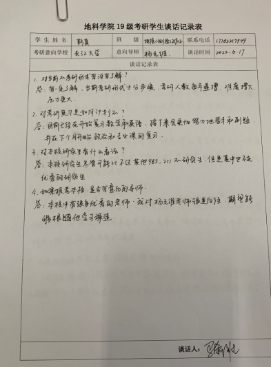 為幫助學院2019級本科生充分了解當前考研形勢,明确考研目标,紮實推進學院2023屆畢業生考研及就業工作,我院積極組織2019級班主任,主動面對面約談學生開展考研動員工作。
