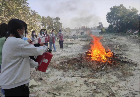 活動伊始,保衛處消防安全管理員甯明老師向同學們詳細講授有關消防的常識性知識、滅火器的種類與性質并強調安全用電用火的重要性。随後,在保衛人員的陪同保護下,每位同學手持滅火器,逐一走近指定滅火區進行滅火實操。