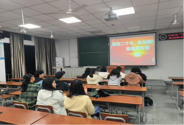 主講人魏金冉同學帶領全班集中開展“學習二十大 啟航新征程”主題團會,進行黨的學習教育,整個過程同學們認真學習黨的二十大精神和延安精神,并在會議結束後進行了讨論和感悟分享。