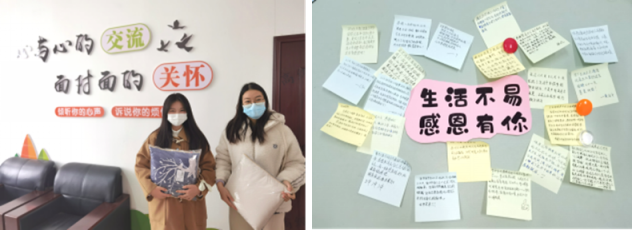 心育部通過後台記錄,根據打卡的天數與日記質量進行排名,精心準備了抱枕、香薰、蒸汽眼罩、運動器材等暖心禮品。同學們在留言闆上分享感想,開心地領走禮物。