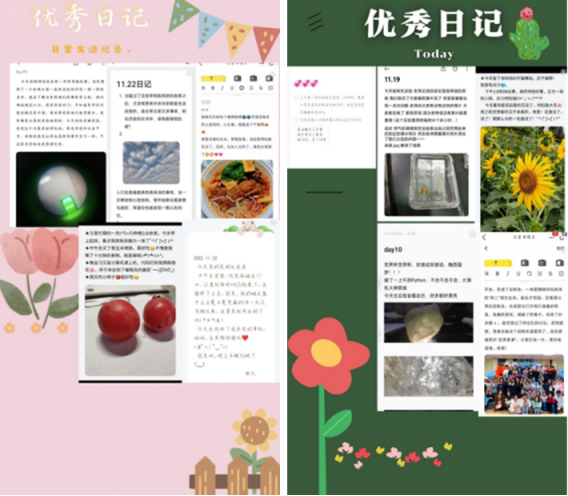本次活動為期21天,自11月4日一開始,就收獲了近百名學子的踴躍參與,同學們積極分享日常生活中的暖心、感動時刻。負責人每天在QQ群提醒、收集,次日将優秀日記制作成電子手賬,分享在學院官方QQ空間,鼓勵同學們堅持記錄。