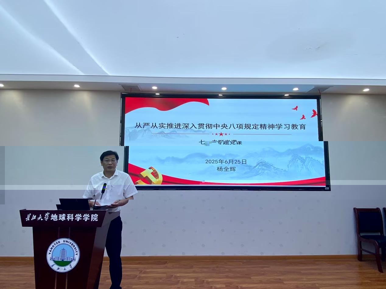 為深入貫徹中央八項規定精神學習教育,進一步增強全院教師的紀律意識和規矩意識,以優良作風推動學院高質量發展,6月25日下午,學院黨委書記楊全輝在石油科技大樓C301會議室,以“從嚴從實推進深入貫徹中央八項規定精神學習教育”為題,為全體教師講授專題黨課。