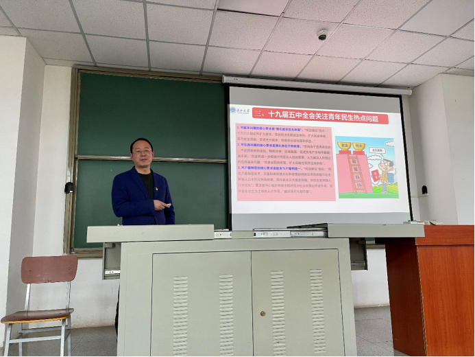 (通訊員 何一鳴 郭浩宇)4月22日下午,我院入黨積極分子集中授課環節在武教B-103開展,學院黨委書記江萬哲以《新時代青年的使命與擔當——學習領會十九屆五中全會精神》為主題,為我院入黨積極分子講授了一次形勢與政策專題黨課。