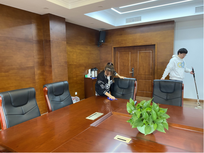 (通訊員 吉霞)建黨百年之際,根據學校及學院“學黨史、悟思想、辦實事、開新局”系列活動安排,我院學生黨支部積極響應各級黨委黨史學習号召,組織學生黨員和入黨積極分子開展了系列志願活動。從今天春季學期開學至今,每周五安排四名黨員志願者打掃學院會議室就是系列活動之一,旨在讓學生們在勞動中體會黨史精神價值。