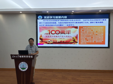 為推動學院黨史學習教育各項任務落細落實,營造黨史學習教育良好氛圍,紮實推動黨史學習教育走深走實,2021年6月23日,胡明毅院長在石油科技大樓C301會議室,以“學習黨史、增強信心、促學院發展”為題,為全體教職工黨員上了一場生動的黨課。