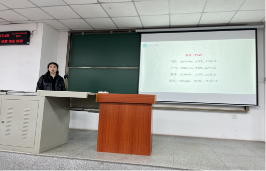 分享會中,馬葉青首先向同學們強調通過英語四級考試的重要性。她圍繞入黨、學科競賽、評獎評優及考研等方面展開闡述,刷新同學們對四級考試的認知。