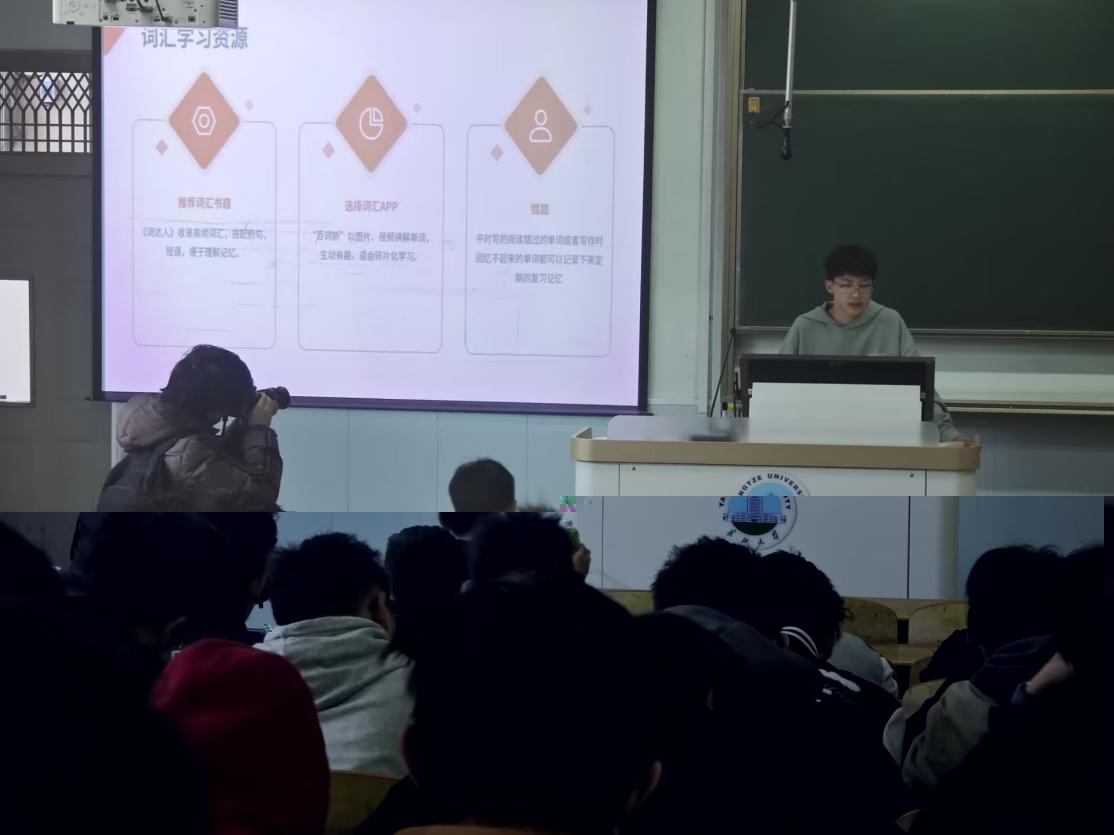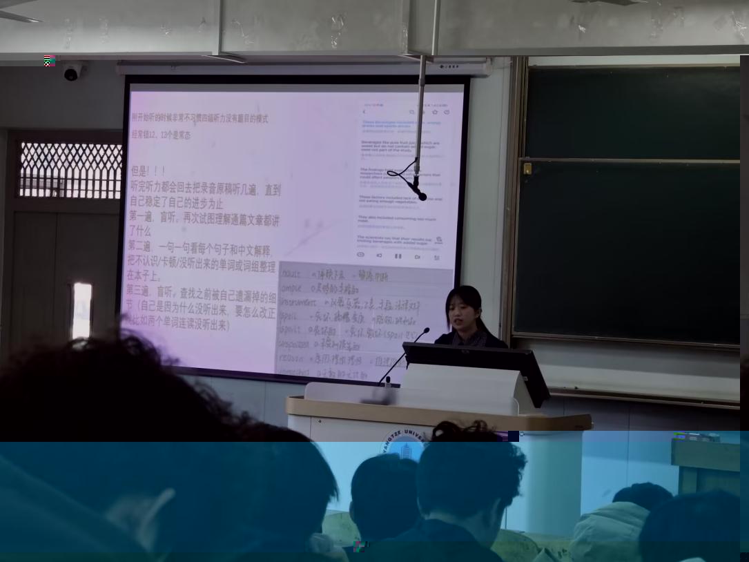 資工油光22201雷航以“逆風翻盤”為題,講述自己如何在完全沒有聽力基礎的情況下,通過反複練習真題錄音,熟悉語速和口音,最終在四級考試中取得高分。資工(卓越)22301班的韓艾希分享自己在備考時會根據自身實際水平設定合理的目标分數,并在達成目标時給自己一個小獎勵,以激勵自己不斷努力。資工12401班的蔔文傑提醒同學們一定要加強單詞背誦,自己經常使用“百詞斬”,以圖片、視頻講解單詞,生動有趣,适合碎片化學習。地信12401班的王梓璇說:“改變拖延的習慣,我們的備戰就成功了一半。”幾位同學分享了自己的備考經驗和學習方法。他們從詞彙積累、聽力訓練、閱讀理解、寫作技巧等方面進行了詳細的介紹,并建議同學們合理安排時間,制定科學的學習計劃,多做真題,注重總結錯題,不斷提高自己的英語綜合能力。