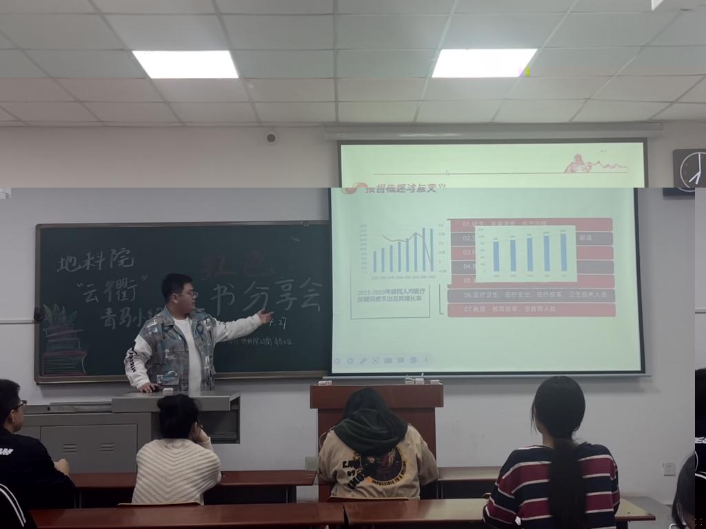 校園活動展風采。4月27日我院“雲衢”青馬小組舉行讀書分享會,同學分依次分享了閱讀《黨的十九大報告》、《馬克思主義哲學十講》和《紅岩》等書籍的感受與感悟,傳承紅色精神。5月11日我院“值青春 慶青春”趣味運動會在校區操場熱鬧開賽,同學們積極參與滾鐵環、跳大繩和三人四足等趣味項目中,大家團結協作,默契配合,展示地科學子青春活力。