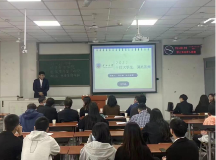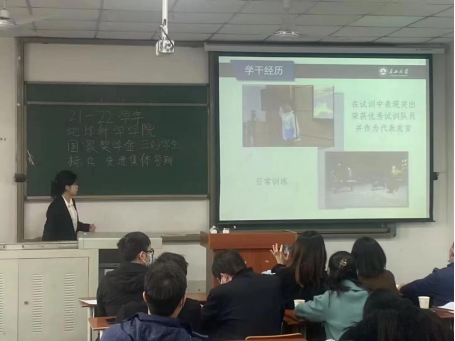 (通訊員 王烨辰 杜子萱)為進一步規範國家獎學金及各類評優評先評審工作,推動學院優良學風建設,我院于10月10日下午3時在武教A104召開了2021-2022學年國家獎學金暨三好學生标兵、優秀班集體答辯會。黨委副書記任倩、班主任代表呂奇奇、趙仲祥、相龍偉、尚成、教學辦馬麗以及學工辦全體輔導員老師參加了會議。各年級學生代表觀摩了本次答辯會。
