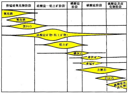 一般來說機械沉積分異作用與化學沉積分異作用,這是自然界中兩種并存的沉積分異作用。一般說來,機械沉積分異作用進行得較早,化學沉積分異作用進行較晚,機械沉積分異作用的砂和粉砂階段,大緻與鐵的氧化物階段即化學沉積分異作用的開始階段相當,械機沉積分異作用的最後階段即粘土沉積階段,大緻與化學沉積分異作用的碳酸鹽階段相當,待化學沉積分異作用進行到硫酸鹽及鹵化物階段時,械機沉積分異作用已基本結束了,故蒸發岩中很少有碎屑混入物。