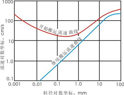 碎屑物質在流水中的侵蝕、搬運、沉積與流速的關系(尤爾斯特隆圖解)