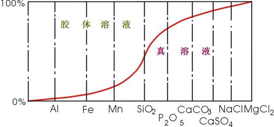 真溶液物質的搬運及沉積作用的根本控制因素是它們的溶解度,即溶解度愈大,愈易搬運,愈難沉積,反之,溶解度愈小,則愈易沉積,愈難搬運。