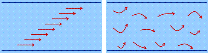 層流是一種緩慢流動的流體,流體質點作有條不紊的平行的線狀運動,彼此不相摻混。紊流是一種充滿了漩渦的急湍流動的流體,流體質點的運動軌迹極不規則,其流速大小和流動方向随時間而變化,彼此互相摻混。