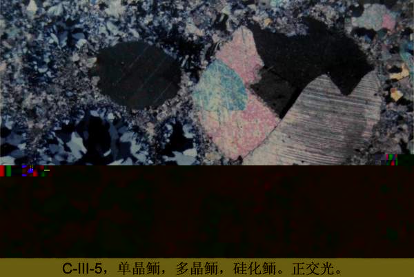 B、填隙物:灰泥重結晶、局部矽化。