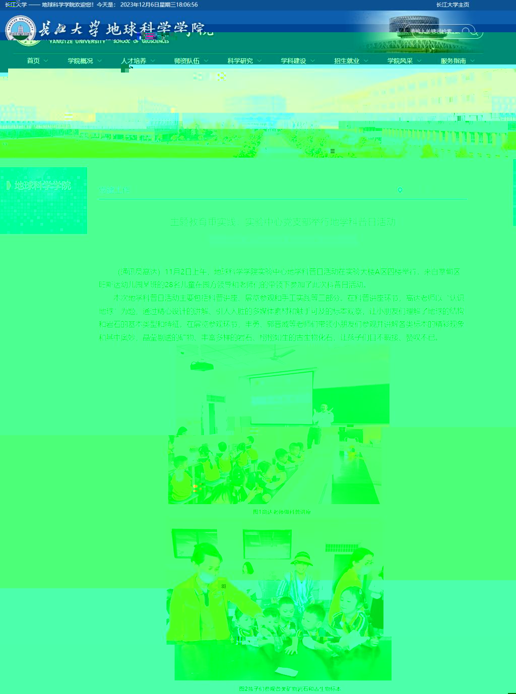 實驗中心利用現有的陳列室條件,自2021年起連續3年舉辦了3次地球科學科普日活動,其間組織科普報告6次,受衆240餘人(圖44-圖50)。科普參觀和講座主題包括“認識地球”、“地球寶石探密”、“穿越恐龍時代”、“暢遊滄海桑田”、“制作寶石盒”等。為地球給孩子們播灑了熱愛地球科學的種子,提升了我校地質學科影響力和美譽度。