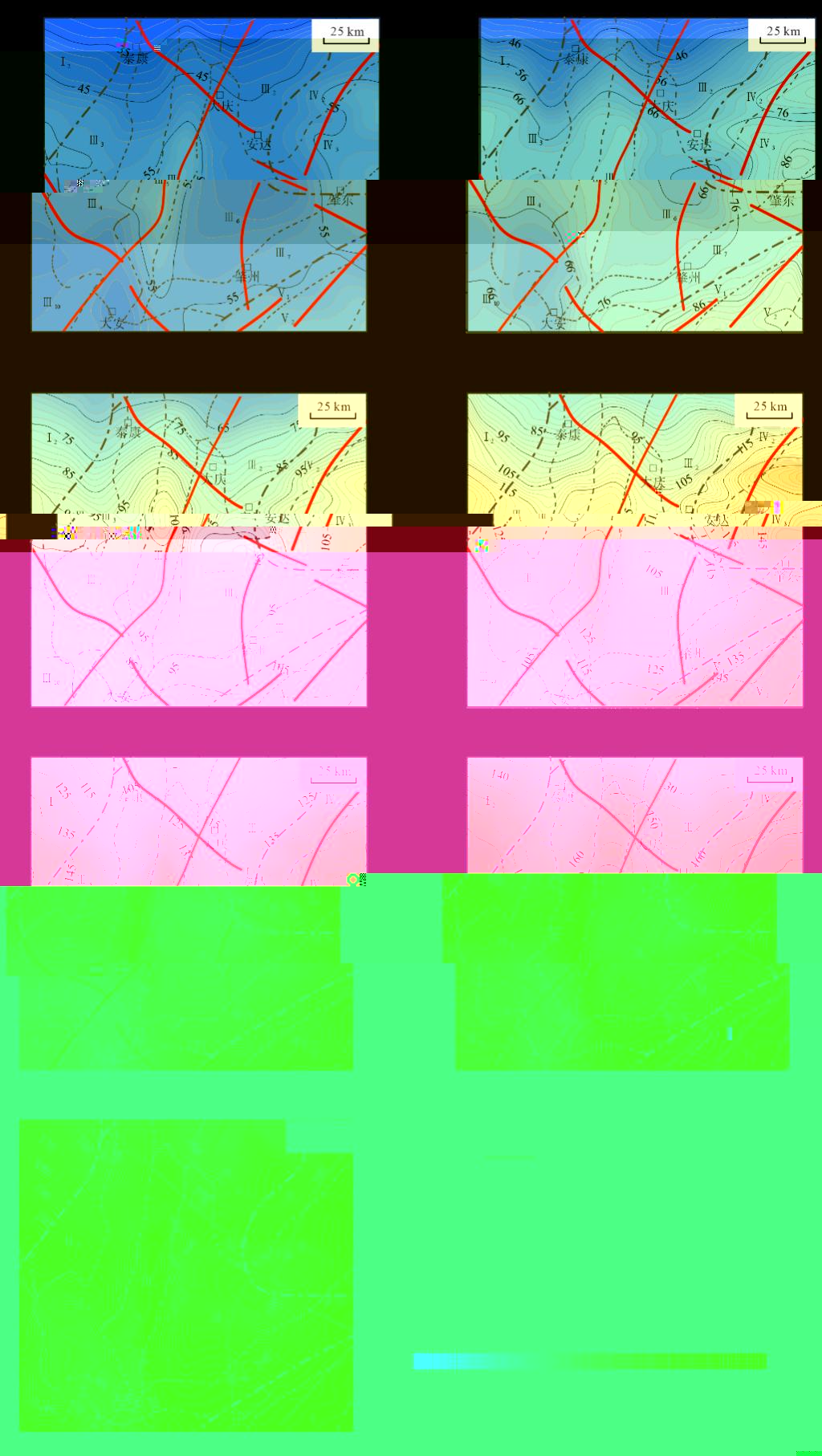 圖2松遼盆地中央坳陷及鄰區不同深度地溫場模拟結果