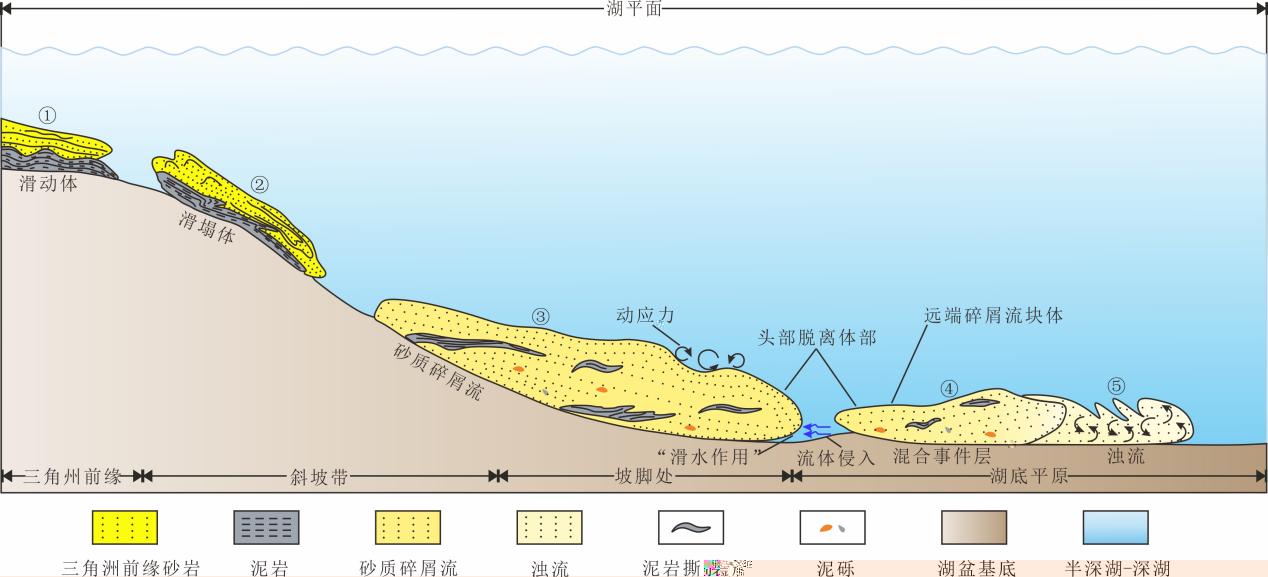 圖2鄂爾多斯盆地甯縣地區長7段湖盆細粒重力流沉積模式