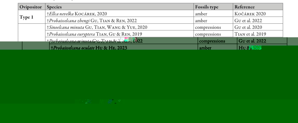 表2 短脈螽總科Elcanoidea中保存的産卵器