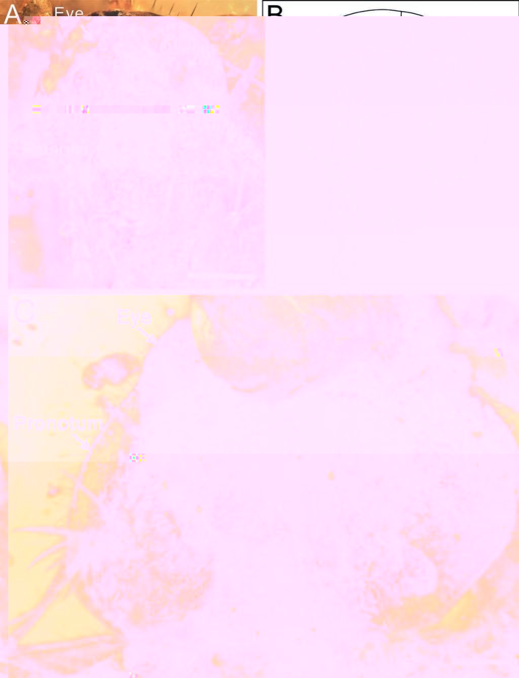圖2(A)和(B)Maculosala circularis頭部細節照片及線描圖;(C)Maculosala circularis前胸背闆細節照片。比例尺=0.5mm