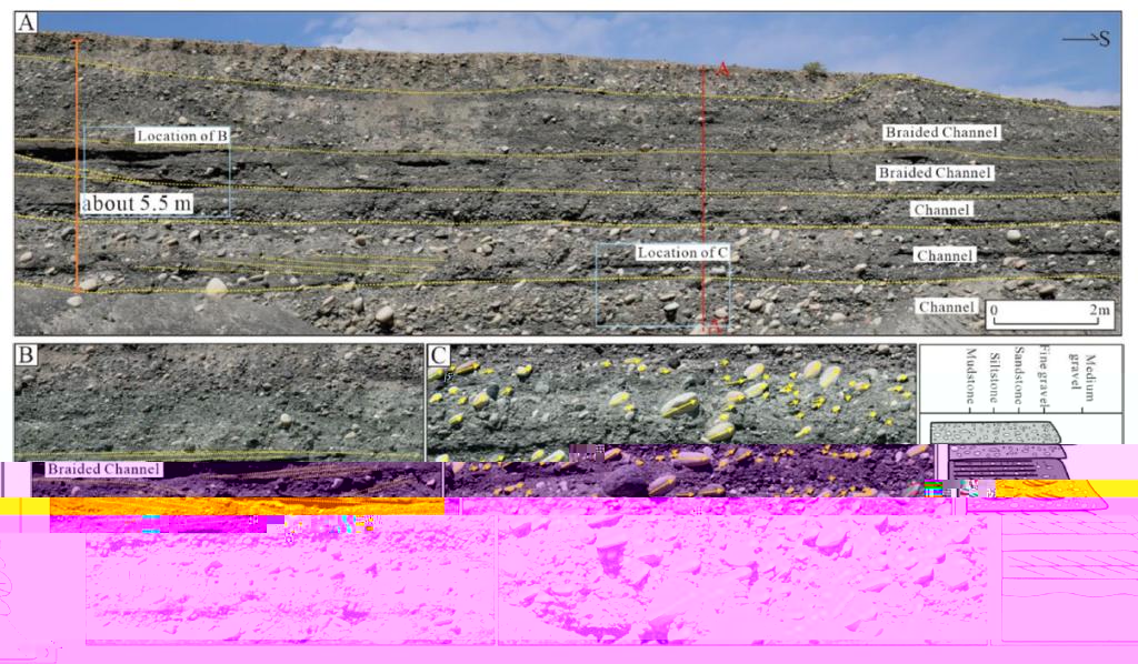 基于古爾圖河分支河流體系現代沉積的詳細調查以及無人機航拍和衛星遙感等資料,分析幹旱地區分支河流體系沉積特征及其差異。通過分析古爾圖河從頂點到末端不同區域坡度、河流形态、沉積特征等因素的變化特征,将古爾圖河分支河流體系劃分為“近端”、“中部”、“遠端”3 個相帶。