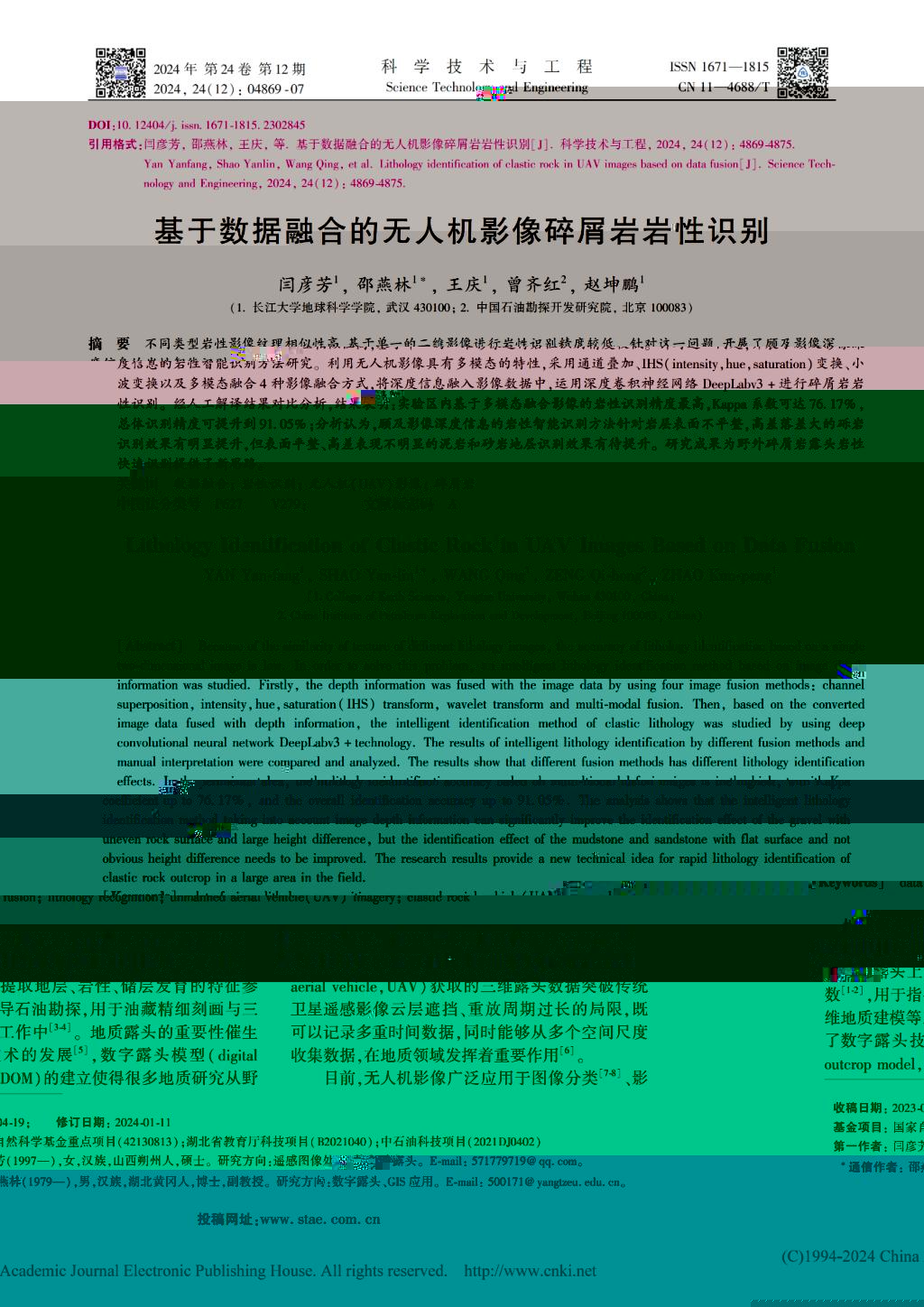 研究表明,多模态融合影像的岩性識别精度最高,Kappa系數達76.17%,總體識别精度提升到91.05%,對高差大的礫岩識别效果提升明顯,但泥岩和砂岩識别效果有待提高。不同融合影像對泥岩、砂岩和礫岩的識别各有優劣,多模态融合影像在整體識别效果上最佳。後續拟采用加入地質約束線的方式進一步提升識别精度。