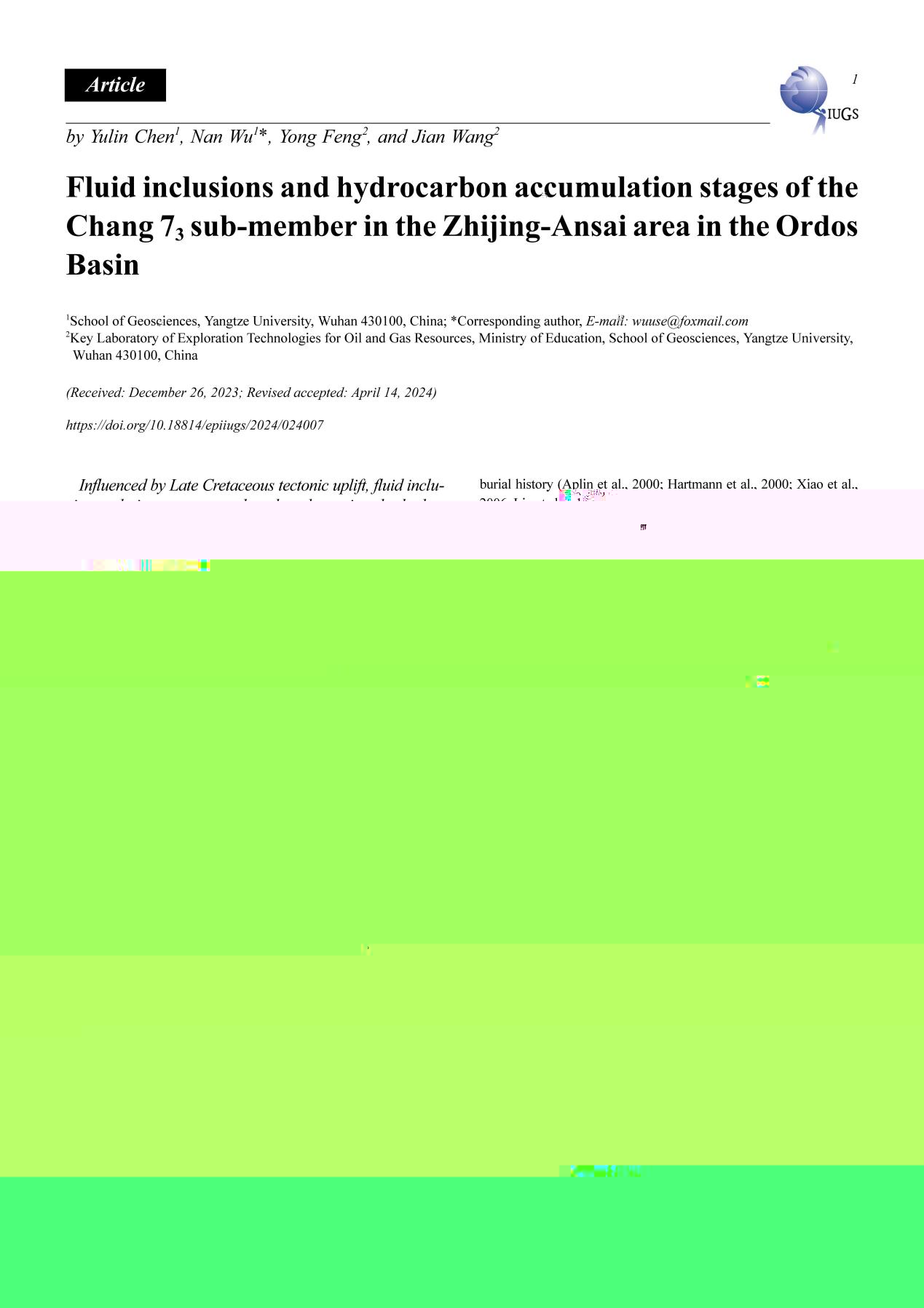 地科學院碩士生陳雨霖在《EPISODES》上發表題為“Fluid inclusions and hydrocarbon accumulation stages of the Chang 73 sub-member in the Zhijing-Ansai area in the Ordos Basin”的研究論文。永利6774app手机版官网為論文第一署名單位,碩士生陳雨霖為論文第一作者,教師吳楠為通訊作者。