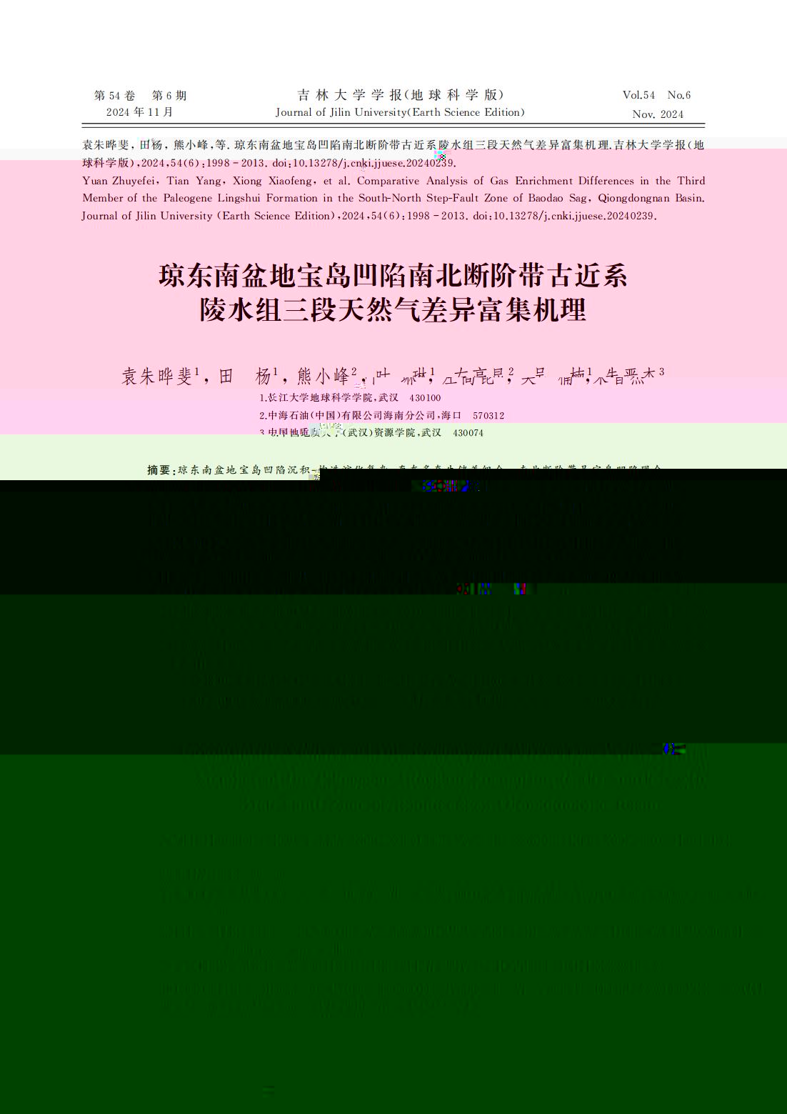 永利6774app手机版官网地質學研究生袁朱晔斐在《吉林大學學報》上發表了題為“瓊東南盆地寶島凹陷南北斷階帶古近系 陵水組三段天然氣差異富集機理”的研究論文。永利6774app手机版官网為論文第一署名單位,碩士生袁朱斐晔為論文第一作者,教師田楊為通訊作者。