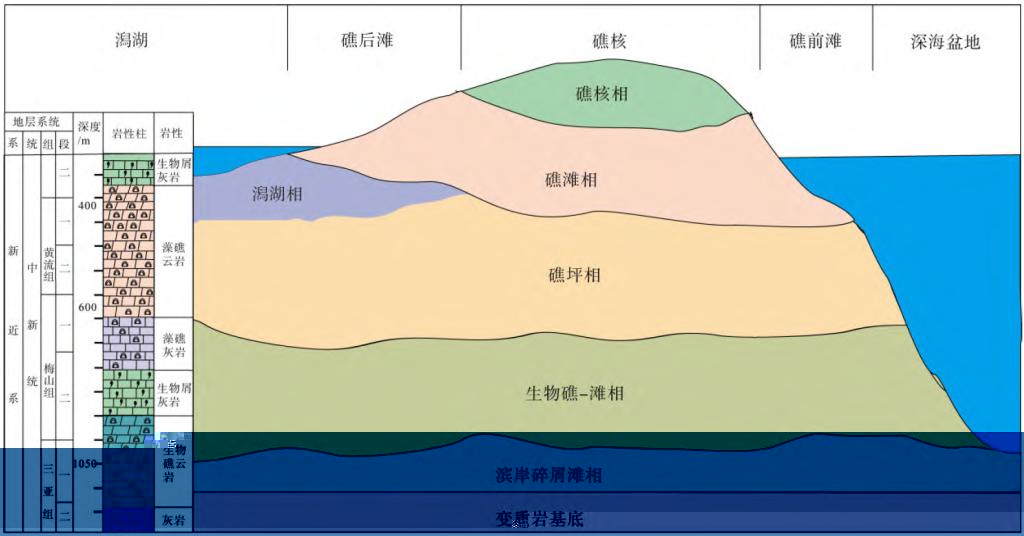 圖1 “西科1 井”新近系藻礁成因綜合模式圖