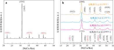 2 白雲石的X射線衍射譜圖及超結構衍射線(015),(021)和(101)