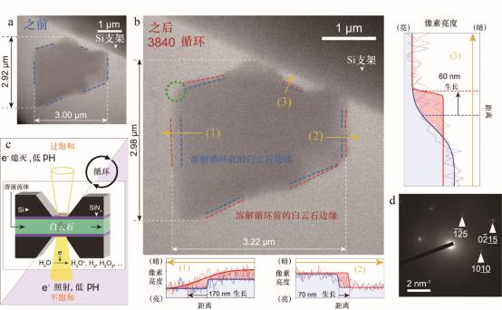 圖4 白雲石晶體生長的原位液體電池TEM圖像