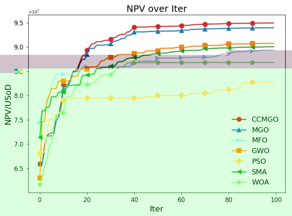 圖1 不同算法的NPV在疊代過程中的收斂情況圖