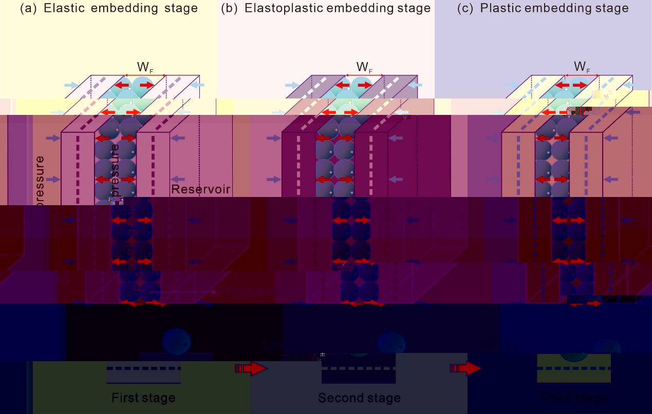 該論文以低滲氣藏為對象,針對實際生産中,不同支撐劑變形階段嵌入深度不确定和裂縫閉合導緻的裂縫寬度難以計算,最終影響産能計算精準度的問題。首先,考慮基質區的應力敏感性,基于滲流理論、流體力學,分别建立了基質區應力敏感性模型、基質區流體流動模型、壓裂區支撐劑嵌入模型、壓裂區流體流動模型,并基于上述模型綜合構建了考慮支撐劑嵌入的低滲氣藏壓裂水平井産能預測模型。其次,利用耦合求解法對該模型的産量進行了求解。最後,根據所建模型,分别對低滲氣藏的應力敏感性、導流能力影響因素,産能影響因素三個方面進行了分析與讨論。結果證明,低滲氣藏的基質區有較強的應力敏感性。在壓裂設計中,需要綜合考慮裂縫參數。壓裂後,為維持産量的穩定釋放,需選取粒徑适宜的支撐劑,優化鋪設層數。以達到指導壓裂設計,維持壓裂後效果,精準預測低滲氣藏壓裂水平井産量的目的。對低滲氣藏産能的有效、穩定釋放具有重要意義。
