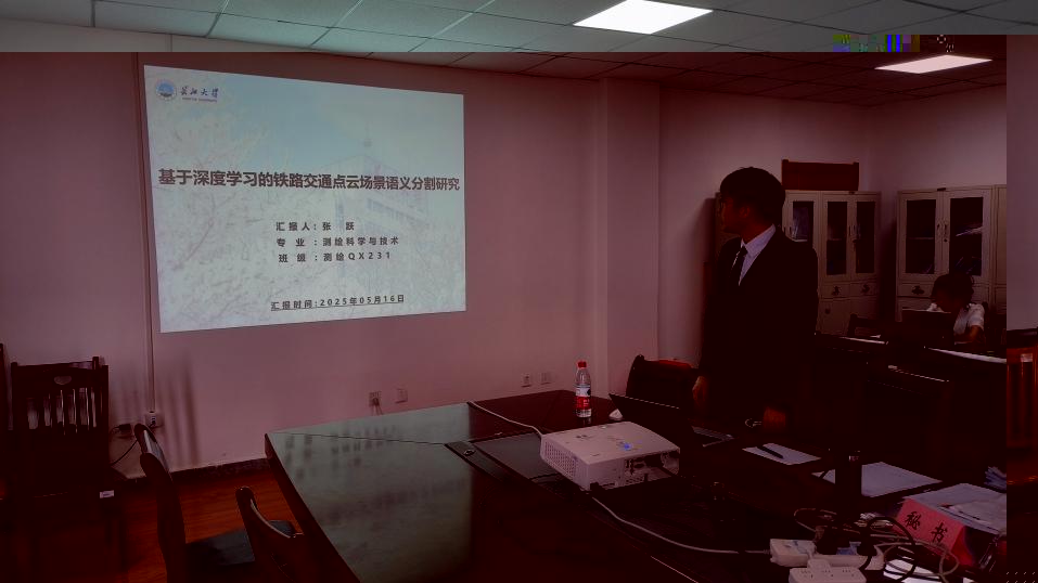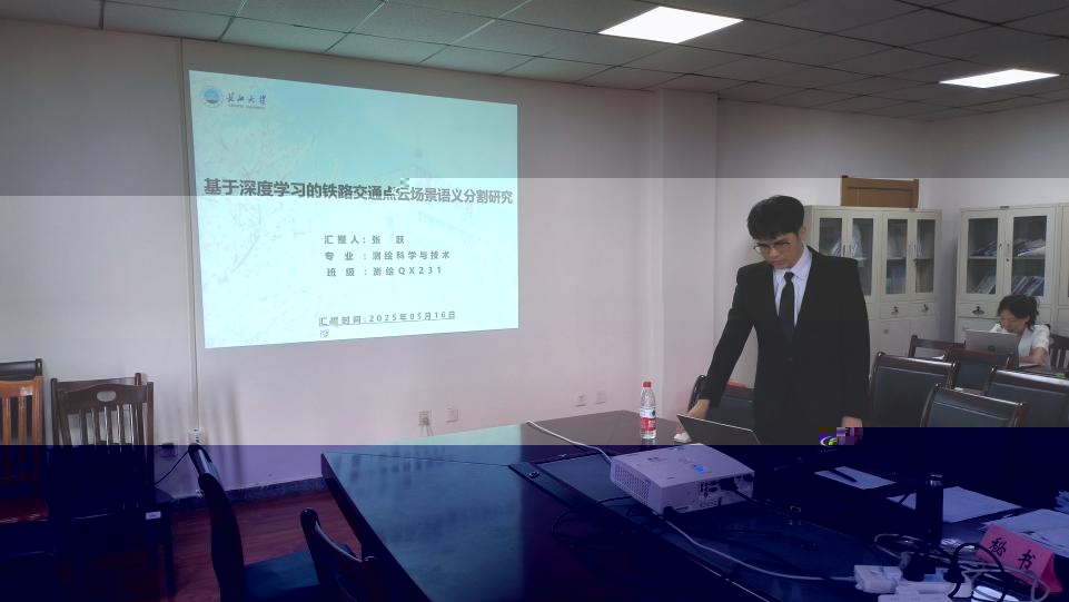 張躍的學位論文題為《基于深度學習的鐵路交通點雲場景語義分割研究》,在導師楊元維副教授的指導下,針對點雲場景的智能解譯問題展開研究。論文以鐵路軌道交通場景作為研究對象,在構建高細粒度鐵路點雲語義分割數據集R3DCS的數據基礎上,設計了場景分段處理及姿态矯正預處理算法,并搭建了動态原型指導下的逐點多尺度特征金字塔點雲語義解析架構,為鐵路場景智能解譯提供了重要理論依據并具有一定的應用價值。