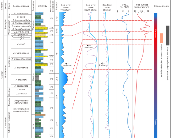 圖2 沿渡河剖面碳酸鹽工廠與二疊紀氣候事件
