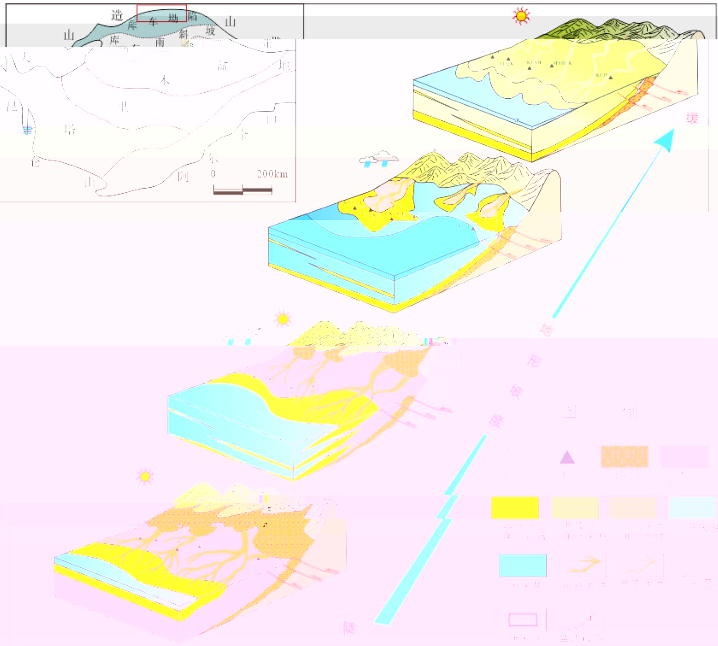 圖1庫車前陸盆地三疊系構造-沉積充填演化模式圖