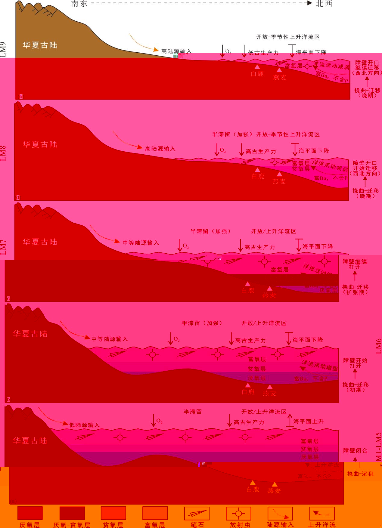 圖1 渝北地區龍馬溪組不同沉積期内有機質富集模式