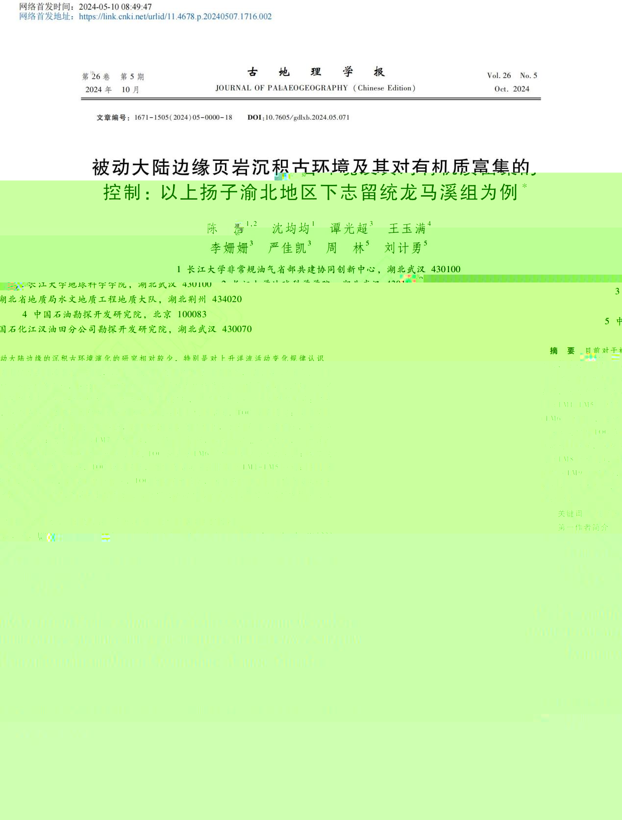 地科學院研究生陳浩以第一作者身份在北大核心期刊《古地理學報》上發表題為“被動大陸邊緣頁岩沉積古環境及其對有機質富集的控制:以上揚子渝北地區下志留統龍馬溪組為例”的研究論文,永利6774app手机版官网非常規油氣省部共建協同創新中心和永利6774app手机版官网為論文第一署名單位。副教授沈均均為通訊作者。