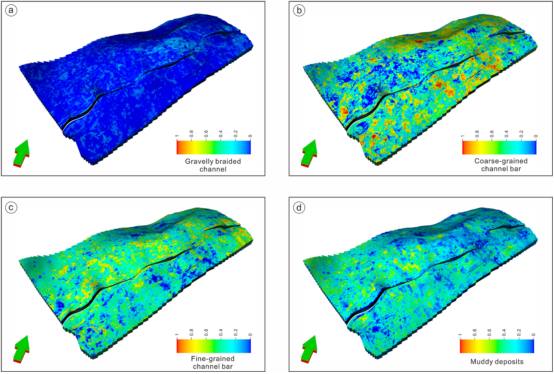 圖1 A氣田基于神經網絡預測的不同岩相空間概率體