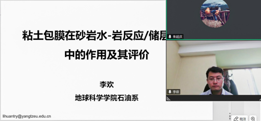 講座伊始,李歡老師首先回顧了當前對于砂岩粘土膜的認識,并從粘土膜可以指示沉積環境和抑制石英加大兩個方面,強調了其在砂岩儲層研究中的重要性。緊接着,他又從粘土膜降低被包裹碎屑顆粒表面積的機理、粘土膜降低跨層物質擴散速率的機理、粘土膜降低被包裹長石顆粒溶蝕速率的機理、粘土膜的潛在溶蝕過程、粘土膜抑制石英加大的機理五個方面詳細讨論了近期的一些研究新進展。