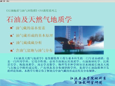 除上述教材外,選用的輔助教材及擴充性資料還有:① 張厚福等主編的《石油地質學新進展(五)》(1998,石油工業出版社)。② 鄒華耀編著《石油地質學新進展》(院内出版)。③ 自行編制的《石油地質學CAI課件》和從外校購置的CAI課件:石油大學(華東)的《石油地質學》。④電教片《石油的生成》和《油氣田勘探》。